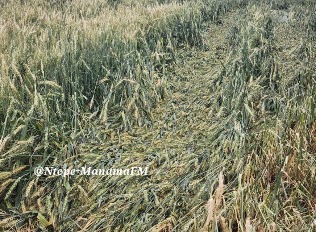 Izithukuthuku zabalimi ziqedwe yisiphepho esitshaye imizuzu engamatshumi amane lanhlanu (45′). Isiphepho ebesihamba ngesiqubu esikhulu sidilize indlu eziphakathi kwaleyo Irrigation, nangu Rebecca Khabo.
